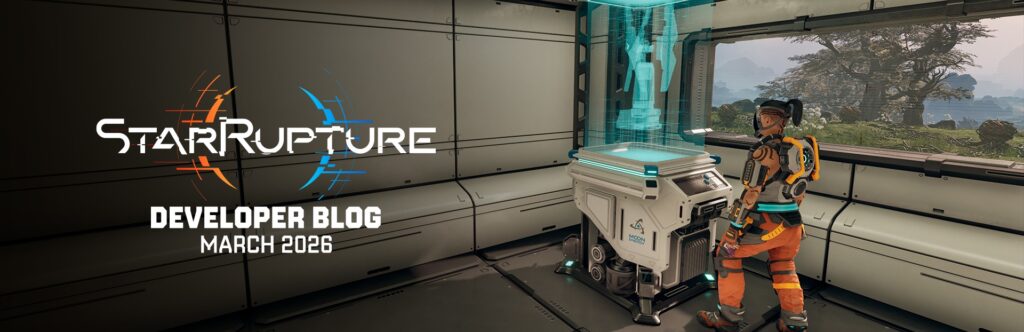 Nous débutons ce mois de mars avec un nouveau blog des développeurs tout juste sorti du four ! Il vous permettra de jeter un œil aux dernières nouveautés qui vous attendent pour la prochaine mise à jour de Star Rupture.