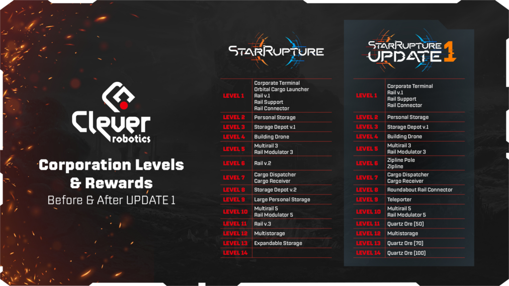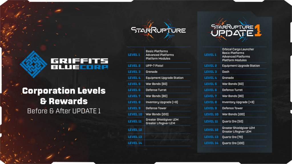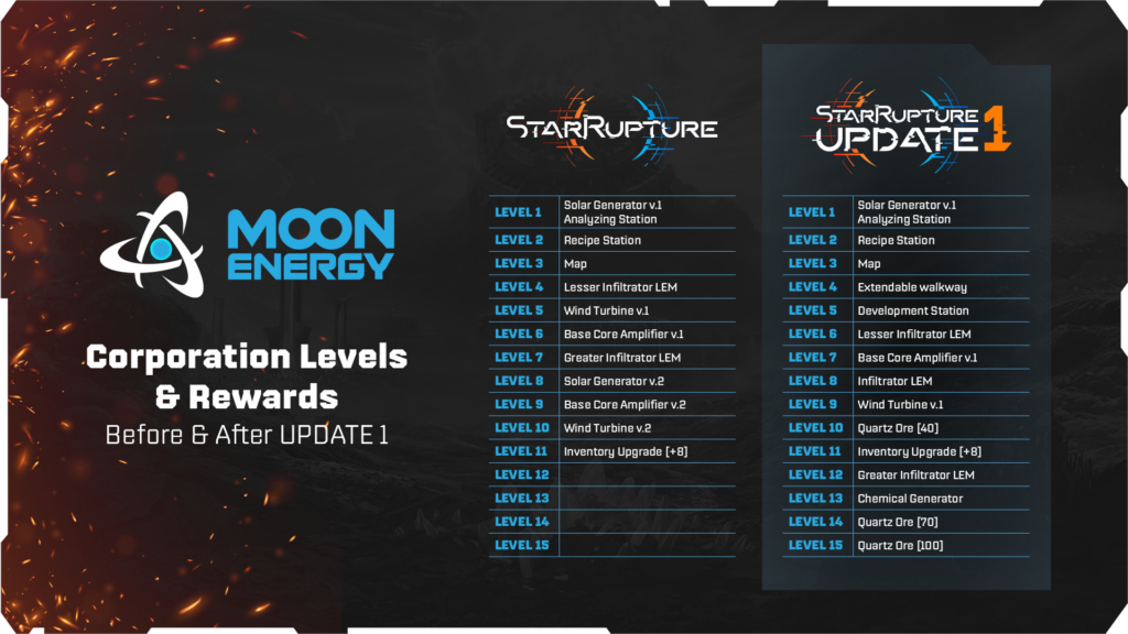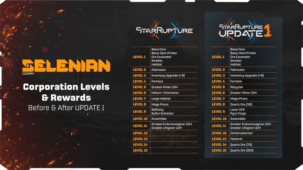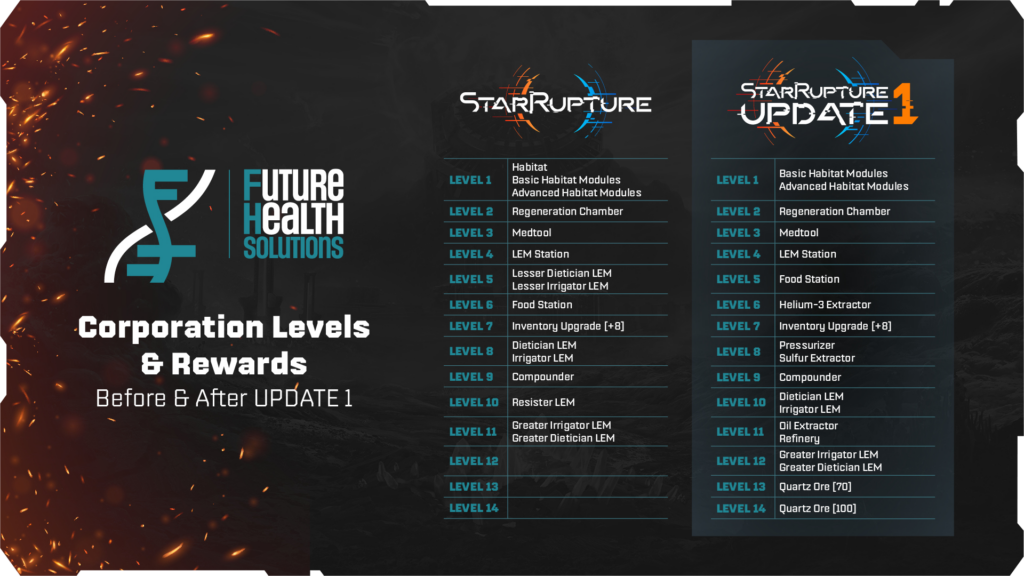 - Avec la mise à jour 1, tous les niveaux de corporation sont réinitialisés au niveau 1 et votre progression avant la mise à jour sera restituée sous forme de points de données.