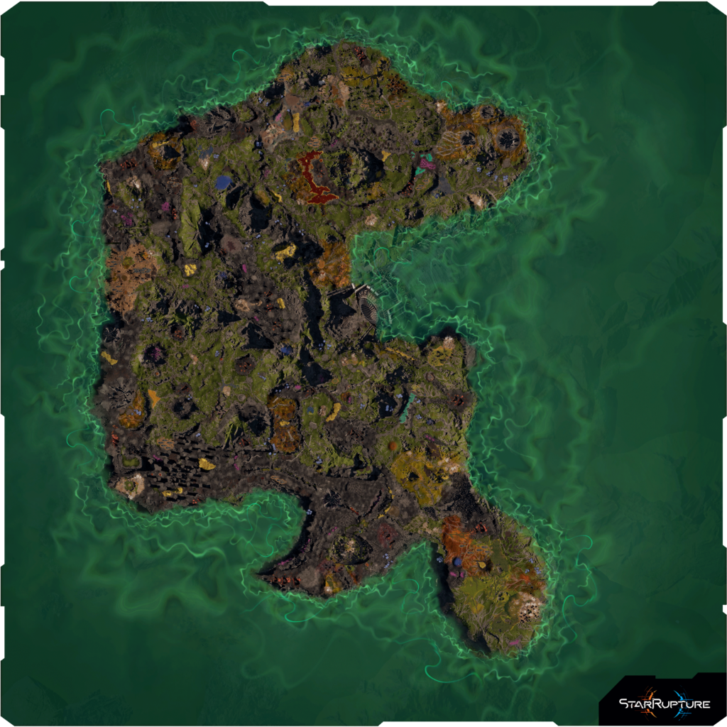 Ci-dessous, nous vous proposons nos cartes du jeu afin que vous puissiez découvrir les zones disponibles pour explorer et y construire vos usines : la première correspond à la situation avant le lancement du Forgotten Engine, la seconde montre l’étendue de la zone de jeu une fois la mission Forgotten Engine terminée.